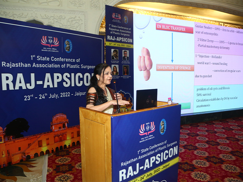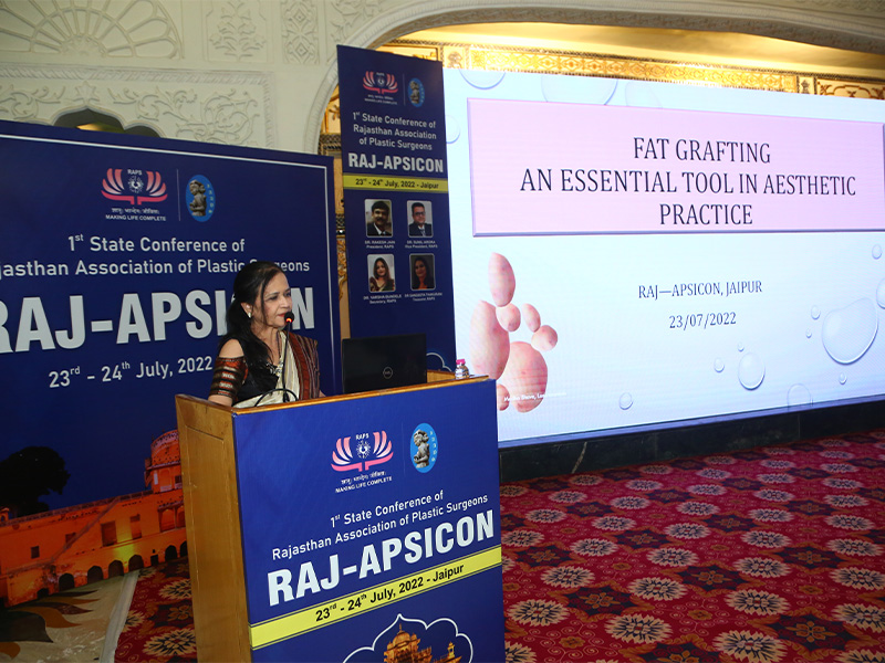 Dr Medha Bhave was invited as an esteemed faculty to deliberate upon principles of fat grafting and its applications in aesthetic surgery to the state meeting of Rajasthan association of plastic surgeons on 23/07/2022. Dr Medha Bhave held a continuing medical education program called Fat Is the Future in Thane, Maharashtra in September 2018. This program sparked awareness about this concept among plastic surgeons. Since then she has been asked to talk and present on the topic of Fat grafting in various forums .In Raj Apsicon, she discussed how fat grafting can be used in hybrid breast augmentation, facial rejuvenation and enhancing results of Face tite and Face lift procedures, filling up acne scars and other depressions, improving pigmentation and filling small and large irregularities and asymmetries. There was an enthusiastic response not only from the floor but also from the online viewers. They flooded her with questions to get their doubts cleared so that the procedure could be used in their own practice. Nothing satisfies a surgeon to see colleagues adopting the procedures explained by the surgeon in their personal practice.
